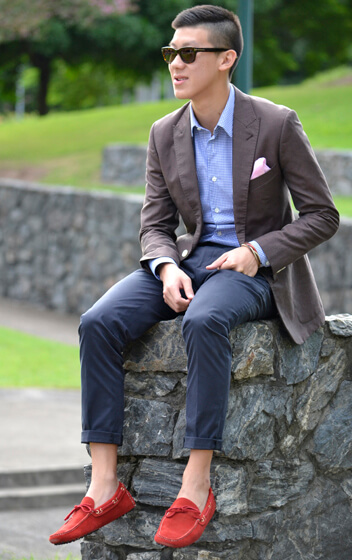 Driving shoes can add a bit of charm and neat informality to your outfit as long as they are worn well.