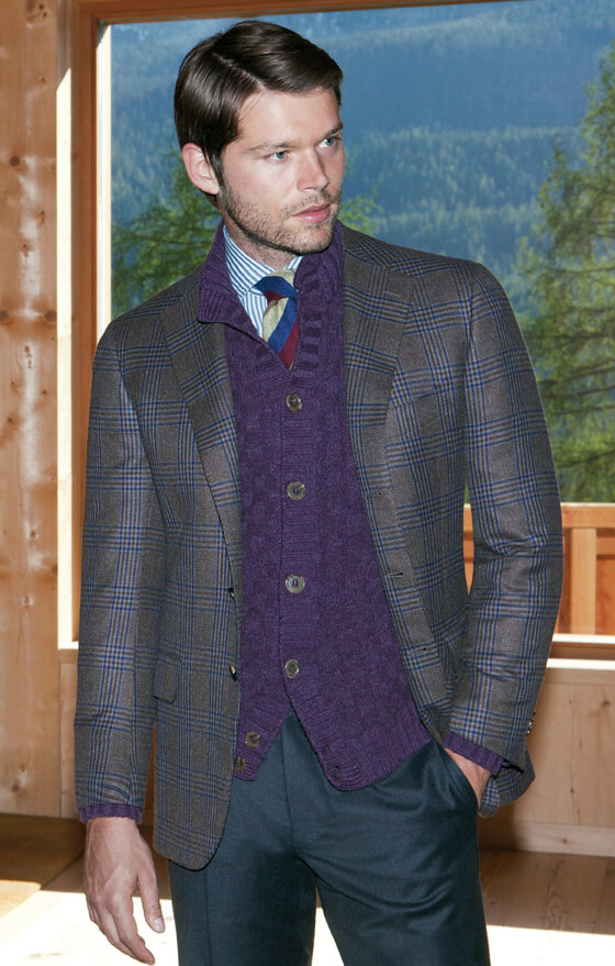 Glen plaid jackets are commonly associated with the weekend and country attire, mostly in sports jackets by the English noblemen. This kind of pattern is suitable for semi-formal occasions, although it can be seen in business suits but with very slight contrast in the check colors.