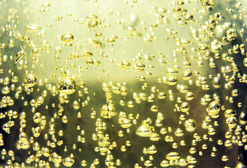- The fizz in the bottle is created by secondary fermentation. So the first job is to make normal, still white wine. Put it into a bottle, add some yeast and sugar and seal it. The yeast feeds on the sugar, producing carbon dioxide and alcohol. As the bottle is sealed there is nowhere for the carbon dioxide to go, so it dissolves in the wine, thus creating a sparkle when opened. The key point here is that the second fermentation is done in the bottle.